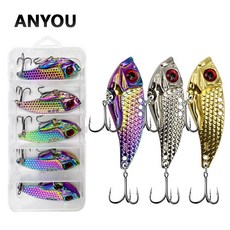 ANYOU 루어 미끼 메탈지그 5개입 메탈바이브 배스 농어 삼치 루어바이브 루어 낚시용품(미끼상자 포함), 1개